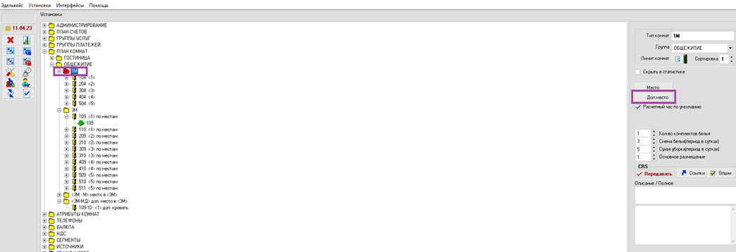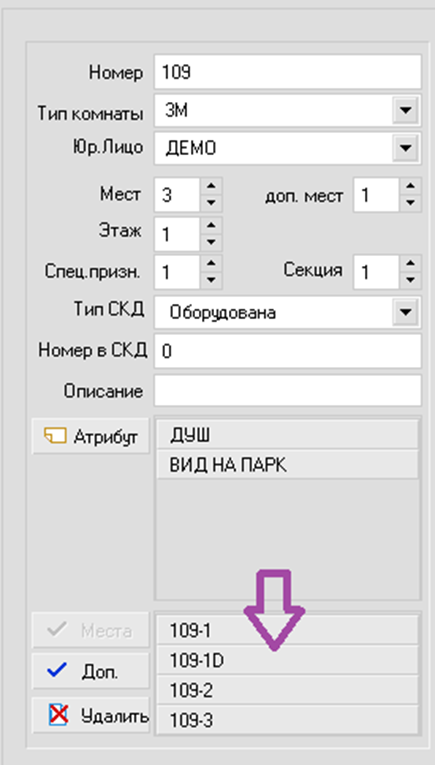 Далее в номере данной категории (в которой мы добавили доп. место) появится кнопка