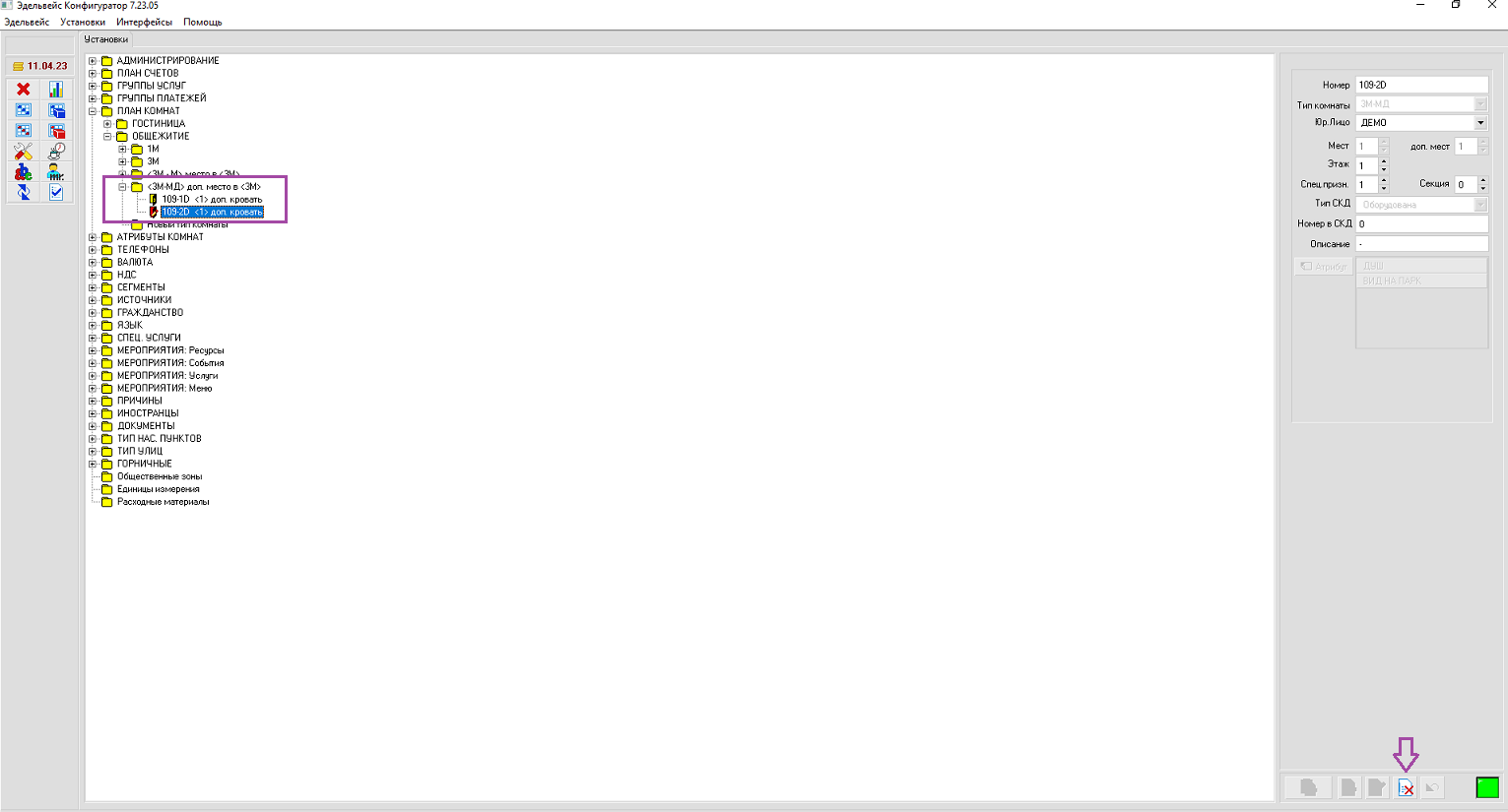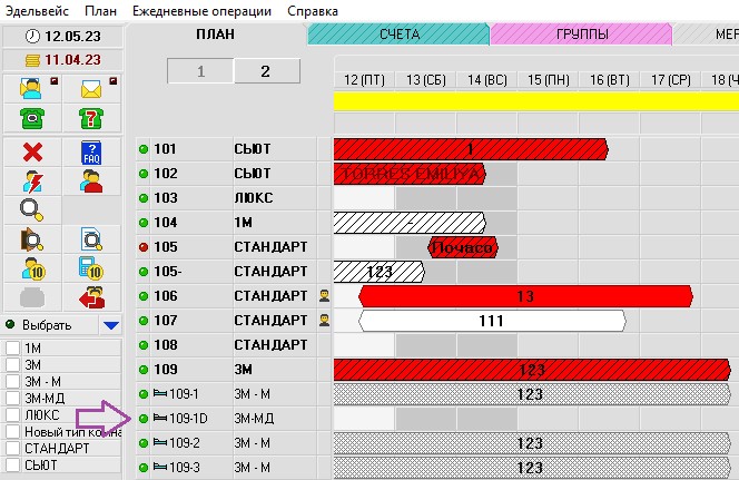 В "Плане комнат" выбрать необходимую категорию номера и нажать кнопку