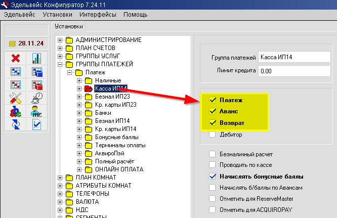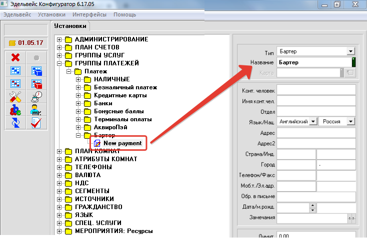 Как добавить новый тип платежа в АСУ Эдельвейс