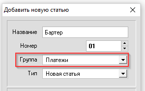 ВАЖНО! Установите в подразделе "Группа" значение "Платежи", вместо "Клиенты".