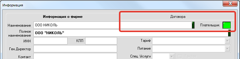 Если организация является плательщиком (создан счет дебитора в модуле "Бухгалтерия") то в таком случае в карточке появляется вторая вкладка - "Договора":