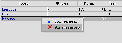 Если удаленных бронирований за годы работы скопилось большое множество, то при помощи системы фильтрации возможно вывести только часть удаленных резервирований, удовлетворяющих критериям фильтра.