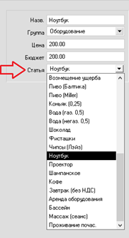 Это может быть одна статья для нескольких услуг, например, «Аренда оборудования» или «Услуги ресторана», а можно каждую услугу связать с такой же в «Плане счетов».