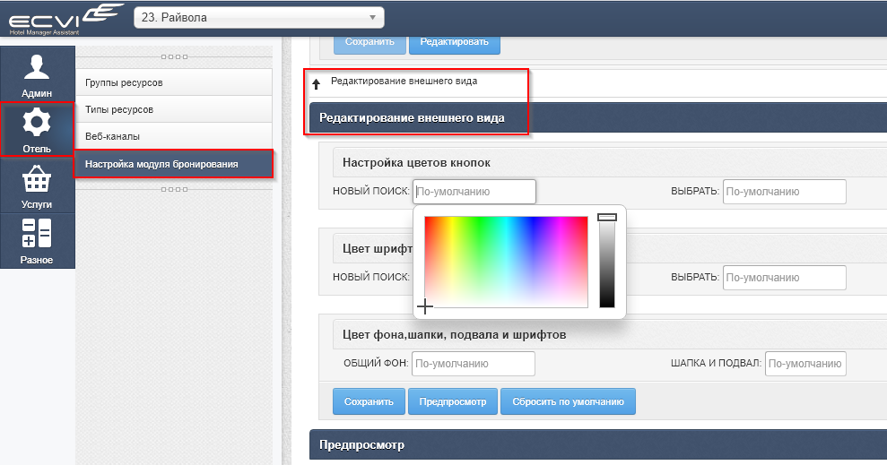 Тут же предусмотрена кнопка "Предпросмотр". По окончанию выбора цвета нажимаем "Сохранить".