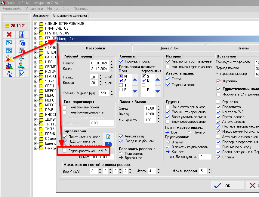 c:\EDEL\CFG.ini - параметр: BillGroupArticles = 1 (или 0)