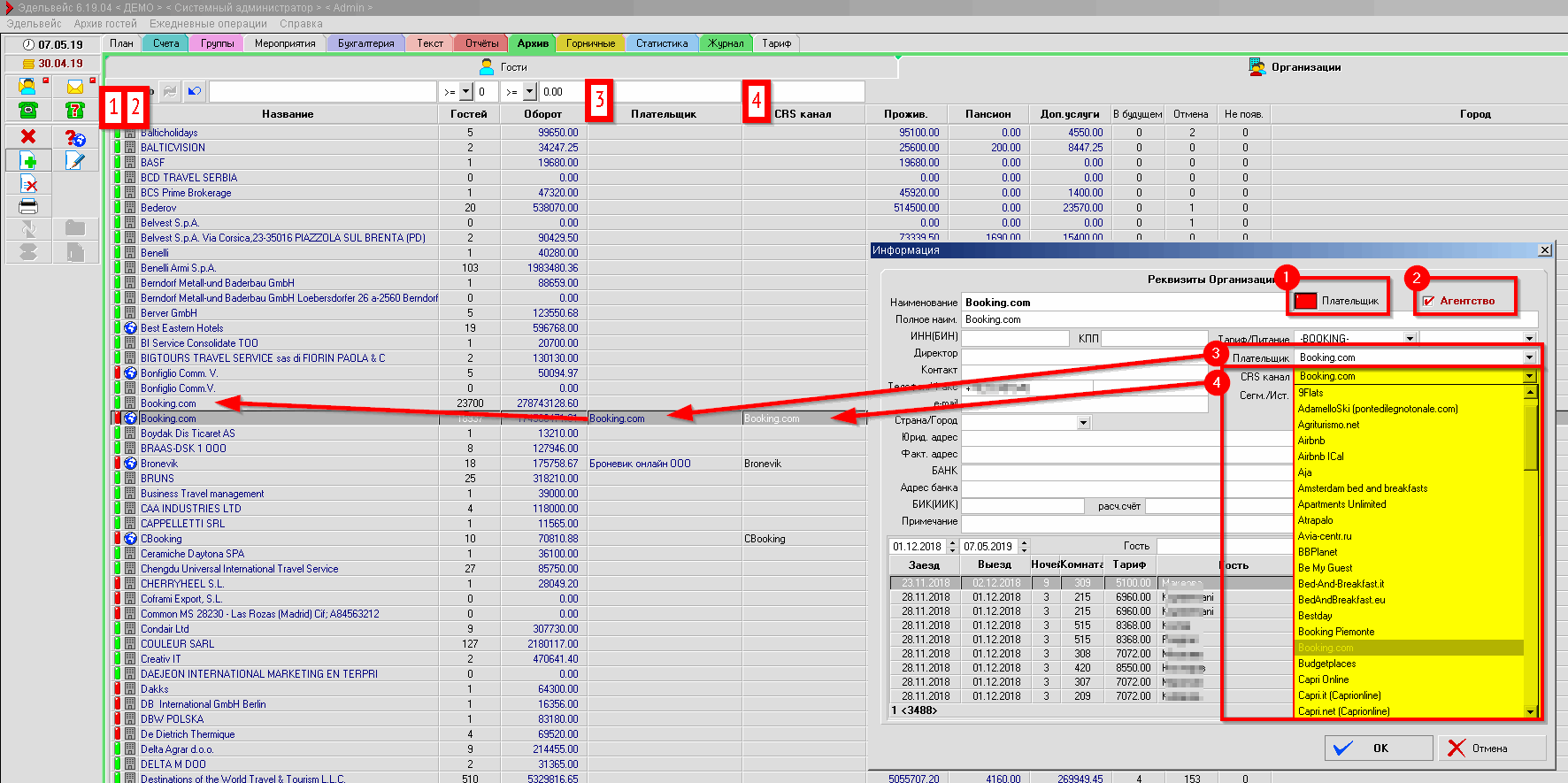 - добавлено поле со списком каналов бронирований системы бронирования и их связи с организацией из списка АСУ (4)