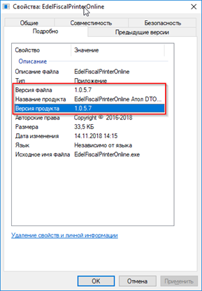 3. Версия модуля работы с кассой EdelFiscalPrinterOnline не ниже 1.0.5.7: