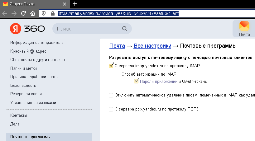 https://id.yandex.ru/profile/generate-apppassword (Почта IMAP,POP3,SMTP)