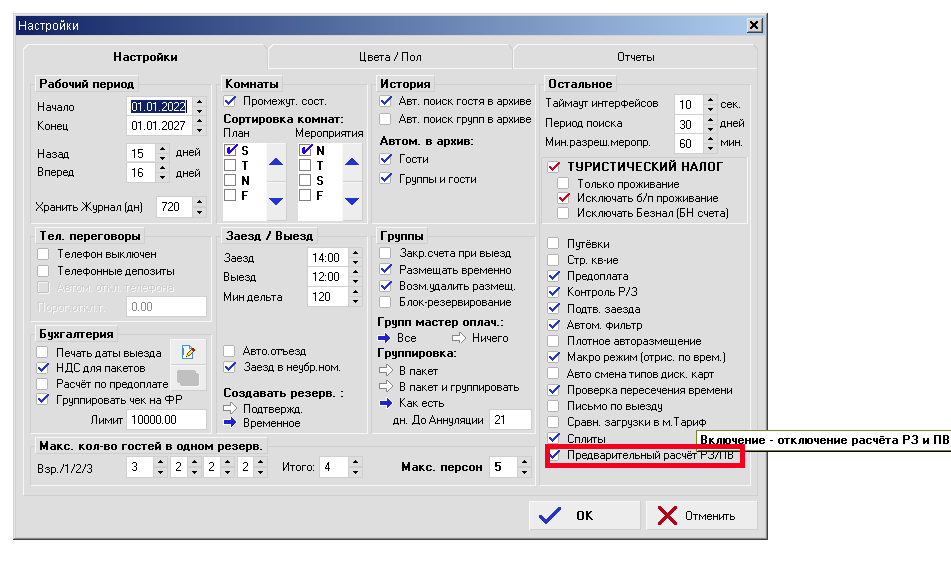При изменении времени выезда и/или времени заезда, и при включённом расчёте - система будет рассчитывать суммы и прибавлять их к стоимости по заявке.