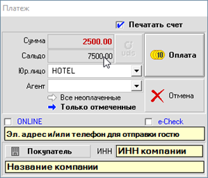 В том случае, если гость просит провести оплату с подстановкой реквизитов организации, следует заполнить поле «Покупатель»: