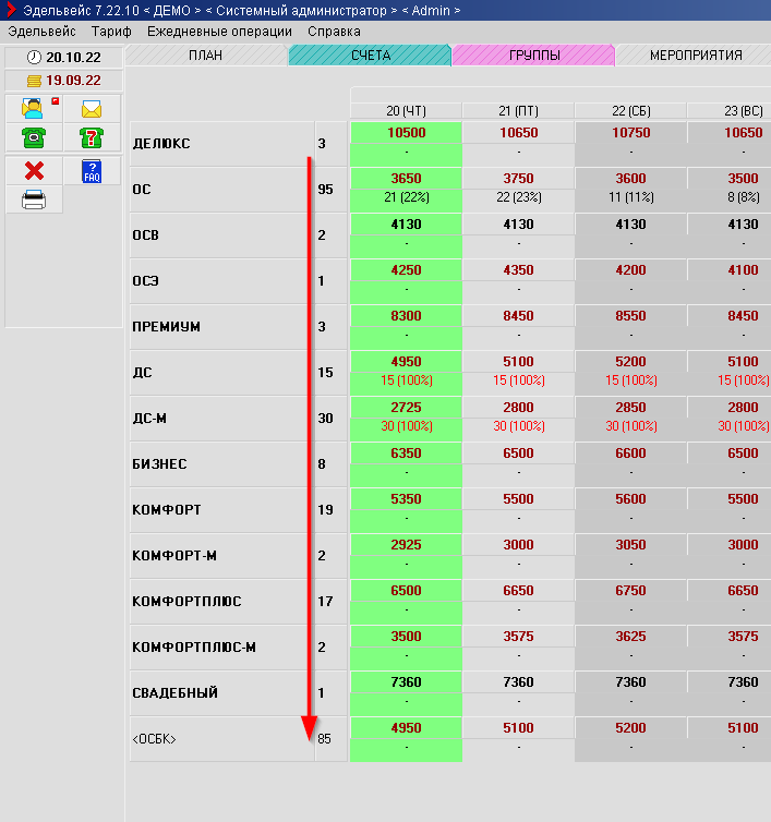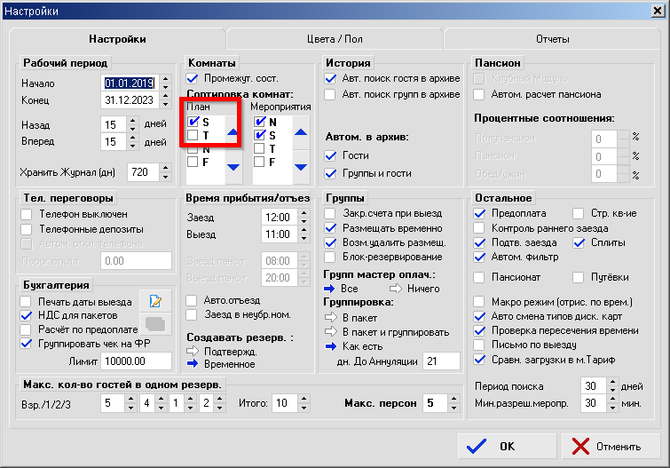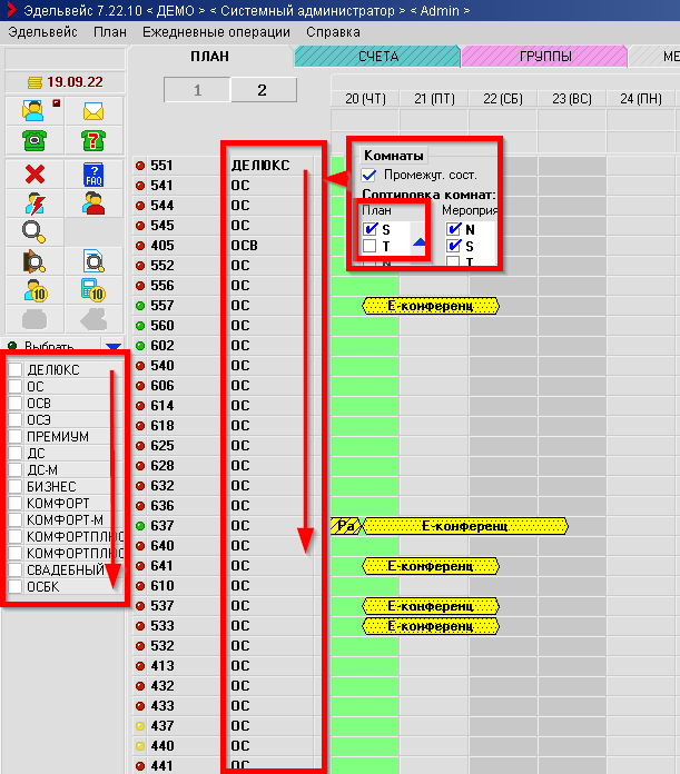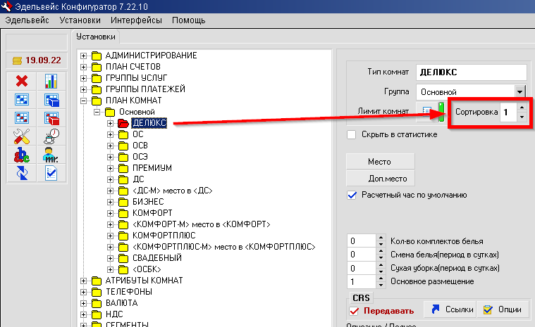 При необходимости сортировать и Комнаты в рамках графического Плана применяя спецсортировку категорий, в настройках сортировки Плана необходимо указать вариант сортировка "S" и поднять этот вариант вверх: