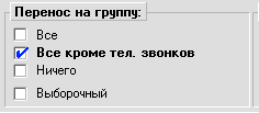Выборочно - нажав на кнопку справа, пользователь может выбрать группы услуг, которые будут автоматически переносится на счет группы.