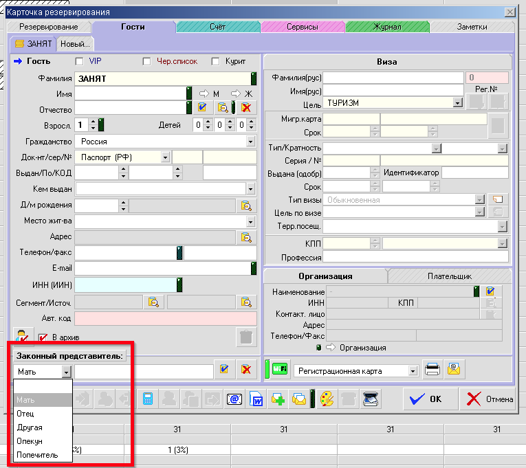 В версии АСУ "Эдельвейс" 6.20.09 - появилось поле с вариантом указания степени родства законного представителя, указываемого у гостя.
