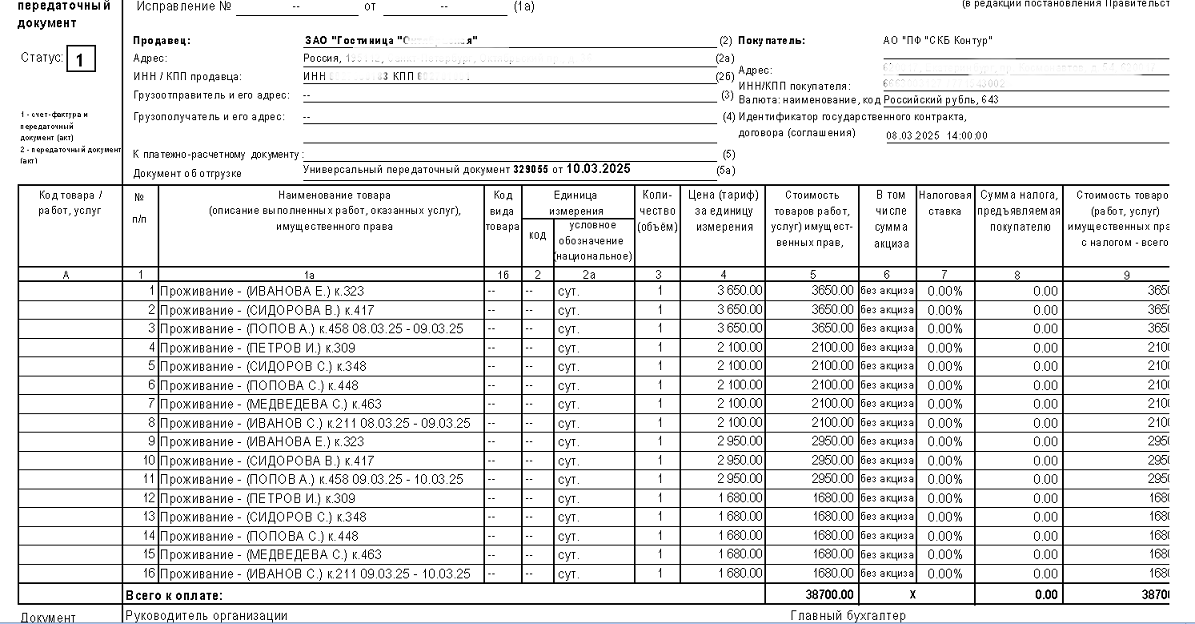 1. Данные гостя заполняются под списком услуг в самой таблице (вместо отдельной строки "Примечания"):