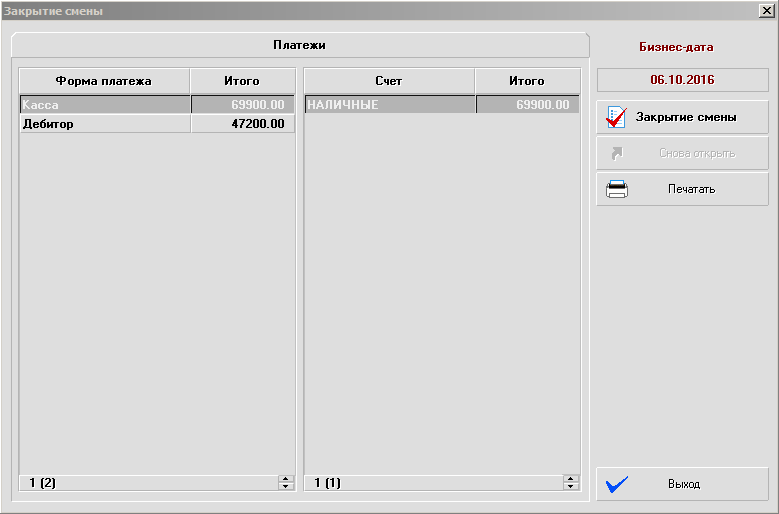 Закрытие смены